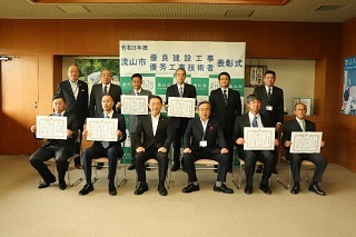 令和5年5月30日、市役所で令和5年度流山市優良建設工事・優秀工事技術者の表彰されました。