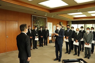 令和3年5月28日、市役所市長室で令和3年度流山市優良建設工事・優秀工事技術者として表彰されました。