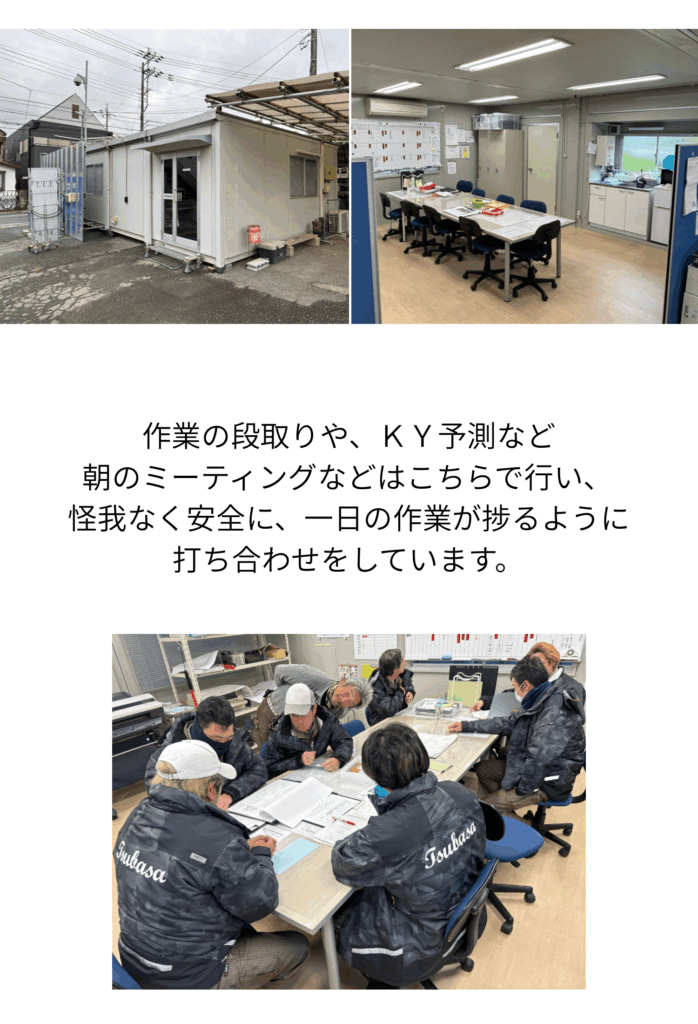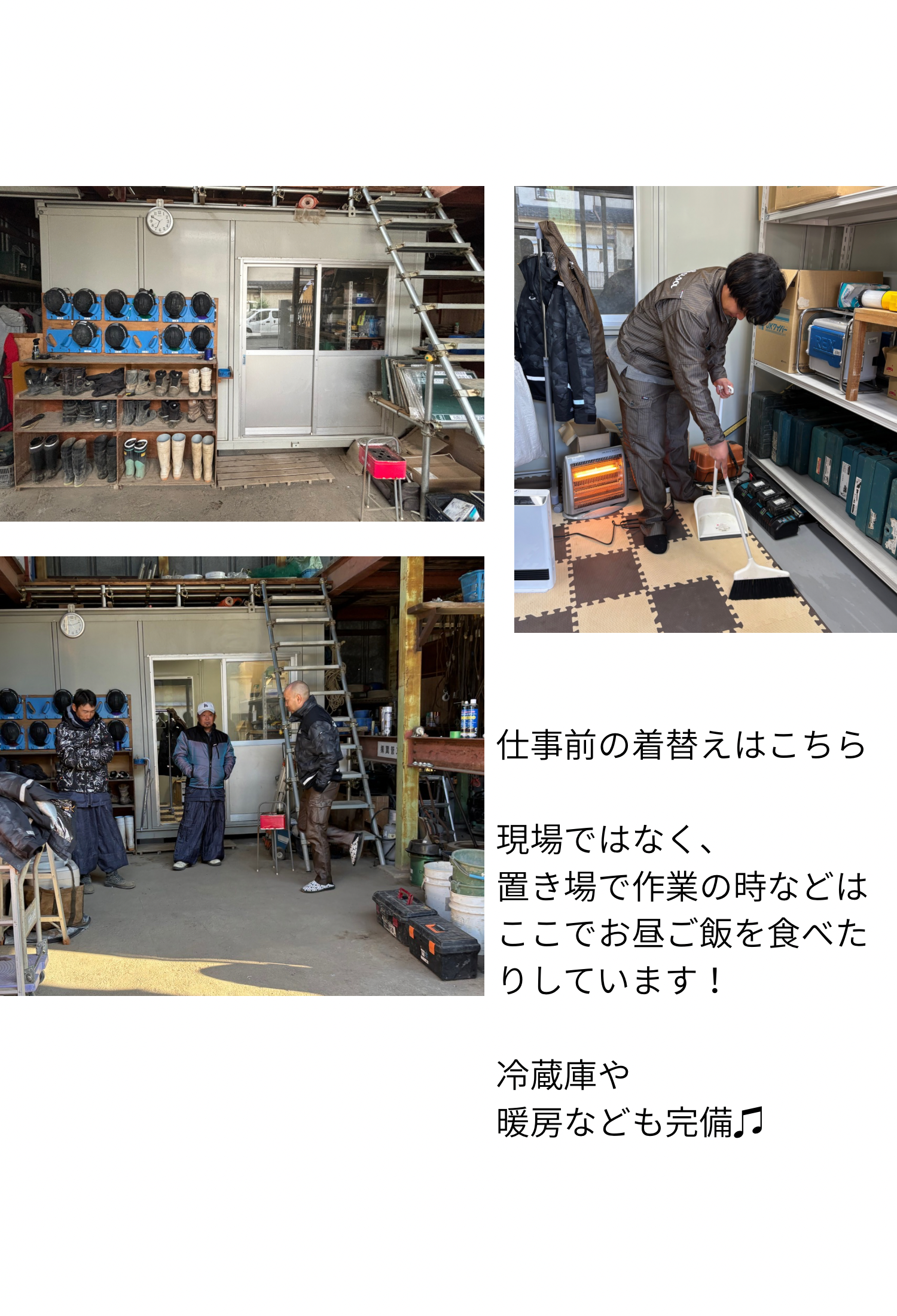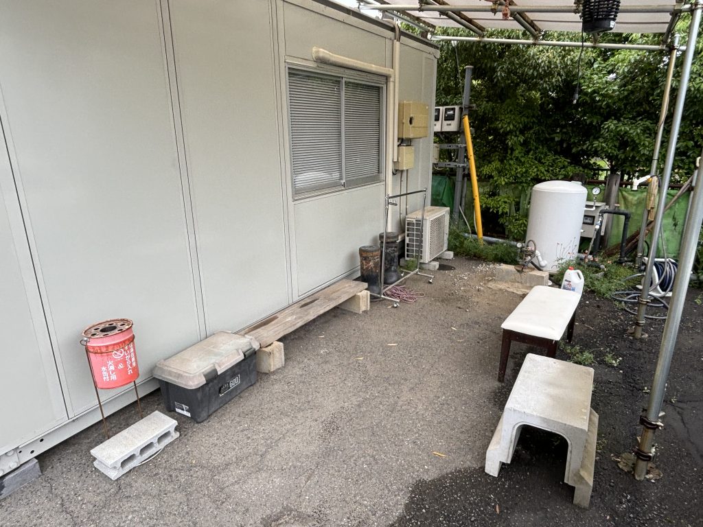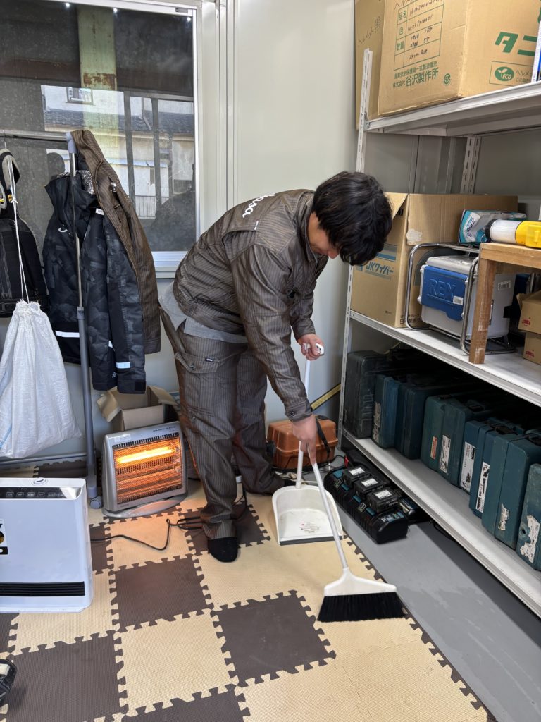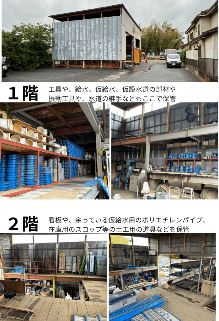 小さい工具や、細かい部材などはこちらの倉庫で保管しており、作業前に準備して使っています。