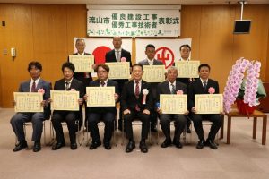 市役所で令和5年度流山市優良建設工事・優秀工事技術者の表彰されました。